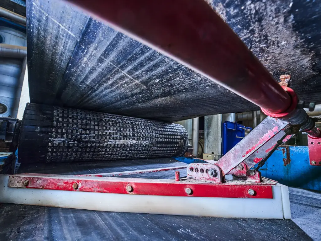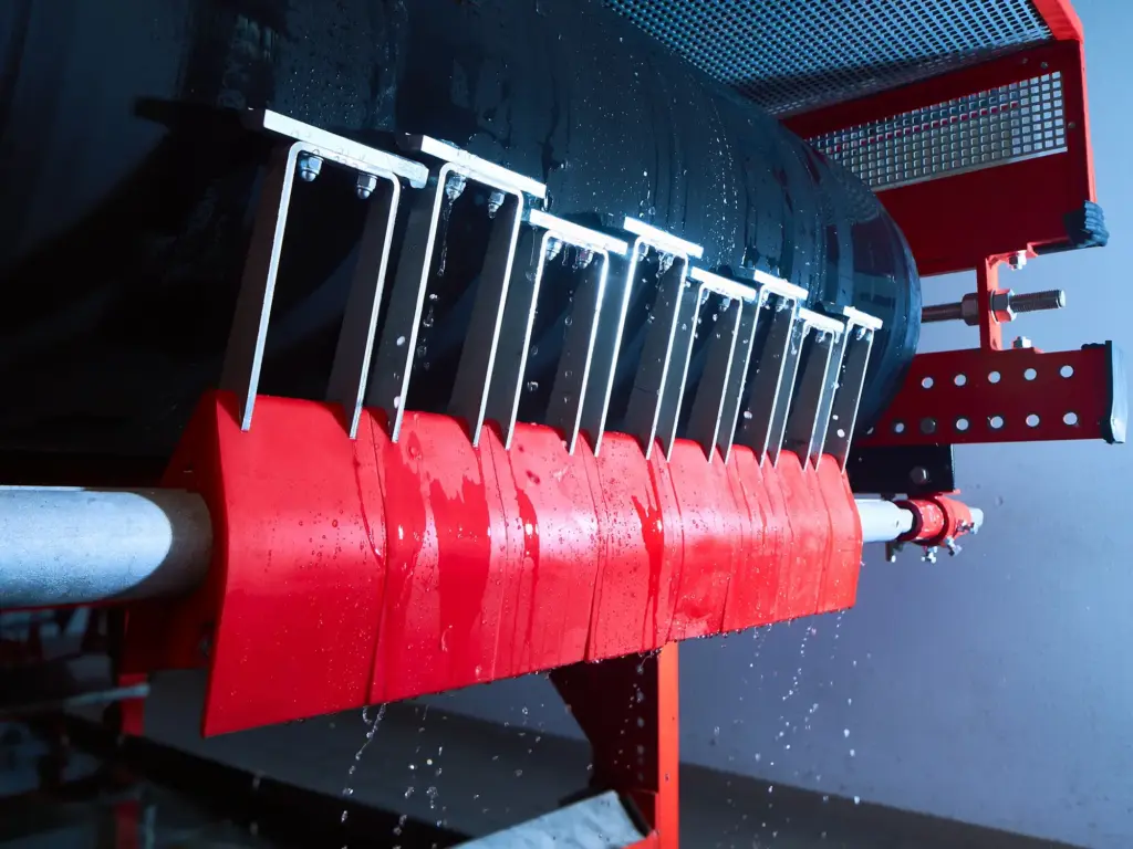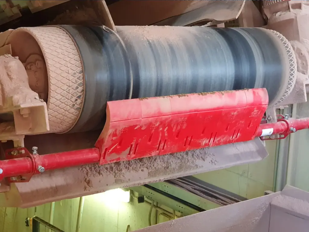 REMACLEAN conveyor belt cleaning systems with scraper bars made of carbide or polyurethane for optimum cleaning results